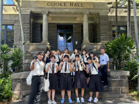 2024年10月9日 11時39分本日は、午前中はプナホウ高校で、現地高校生と交流活動を行いました。ガイヤを紹介し、みんなで踊りました。その後は班に分かれ、日本のこと、ハワイのことをテーマにそってディスカッションしました。午後からはポリネシアンカルチュラルセンターで、ハワイを含むポリネシア諸島について学びました。各島の持つ独特の文化や歴史を、体験活動やショーを観劇することで、楽しく分かりやすく理解することができました。